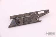 This TAD Gear/Rexford RUT (Rexford Utility Tool) uses a standard utility razor blade. Blade can easily be replaced. This piece features a functional lanyard hole, flat head screwdriver/pry tip, and bottle opener. The Triple Aught Design logo and topo graphic is laser etched into the titanium giving this piece a very unique look. This piece is in excellent condition.