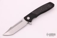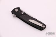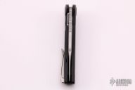 This Micro Evo from Brian Nadeau features a satin finished harpoon blade with a fuller and notched thumbrest. The handle has a black PVD titanium frame with marble carbon fiber inlays, satin titanium tip up clip. Rides on bearings, nice detent, lockup and blade seating, stainless lockface insert. New from maker.
