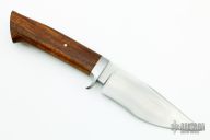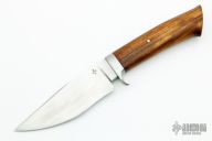This knife by Jouneyman Smith JJ Simon was one of his Journeyman Smith Test Knives. It features a hand rub satin finished blade with false top edge, .231" blade stock and 1.532" blade depth, hidden tang construction. The handle has a stainless steel guard, wood grip and stainless steel pin. New from maker at the 2021 Blade Show.