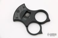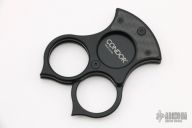 The Red Horse Knife Works Condor Cutter is a perfect accessory for the gentleman of leisure. This knuckle gadget is first and foremost a cigar cutter, but not like most. This one has a black M390 blade, so it will cut your cigars 'till the sun goes down and the cows come home. On the back side it has a bottle opener, to crack all your cold ones too. It has a precision CNC machined black body, and the excellent tolerances send shivers up your spine each time you use it.