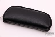 This Mid-Lock by Ralph Turnbull features a Damascus blade with a single thumbstud with ruby inlay. The handle has matching Damascus bolsters, checkered snakewood scales, anodized and fileworked titanium liners, Damascus  backspacer. Comes with a zippered case. Excellent condition.