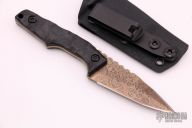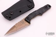 This Muninn EDC by Bawidamann Blades was named after Odin’s Raven. It features an acid etch finished and bronzed blade with notched thumbrest and sharpened top edge, .100" blade stock and 1.085" blade depth, full tang construction. The handle has IM Bawidamann Chunked Pattern Carbon Fiber scales (proprietary Carbon fiber composite). Comes ready to carry with the Bawidamann Uberscabbard. New from maker.