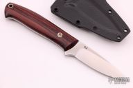 This Model 4 Bird and Trout by Dan Crotts features a satin finished blade, .128" blade stock and .819" blade depth, full tang construction. The handle has king wood scales with a single Mosaic pin and lanyard hole. Comes with a kydex sheath with belt loop for horizontal carry. New from maker.