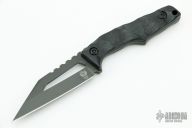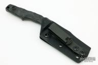 This Stark V2 by Bawidamann Blades features black cerakote finish on the blade, has notched thumbrest, .104" blade stock and 1.029" blade depth, full tang construction. The handle has IM Bawidamann Chunked Pattern Carbon Fiber scales (proprietary Carbon fiber composite). Comes ready to carry with the Bawidamann Uberscabbard. New from maker.