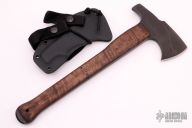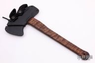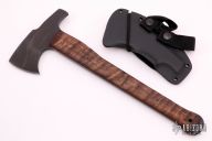 A combination tool developed for Military and Law Enforcement use, the WK Combat Axe is made for breaching and combat applications. The user has easy access with a fast draw carrier. An integral glass breaker extends beyond the end of the handle. The WK Hammer Combat Axe is basically the same axe as the WK Combat Axe, but with a hammer pole rather than a spike. It is a great woodcraft or field axe or performs well as a breaching axe when hammering is part of the operation. A partial cord wrapped upper handle option is available. If the handle is damaged under the head, a new cord can readily be installed. The cord is also an excellent emergency resource. Axe Specifications Axe steel: 80CrV2 Black oxide no-glare finish Head length: 5 7/8" Overall length: 13 3/4" Blade thickness: 3/8" Skeletonized full tapered tang Integral Glass Breaker Partial cord wrap optional Sheath Fast draw carrier Lined Kydex® HD shockcord quick-release retention system Nylon belt straps with Mil-Spec Pull-The-Dot™ snaps Designed for multiple carry options (See our Info page for carry options) Comes with original packaging. New from maker.