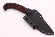 Intended for everyday carry, Contingency’s curved handle and simple sheath conceal well when the need arises. The knife is designed with natural point and edge awareness. In a standard grip, the blade is in line with the thumb. In a reverse grip, the blade is perpendicular to the user’s body. Knife Specifications Blade steel: 80CrV2 Black oxide no-glare finish Blade length: 3.5" Overall length: 7.625" Blade thickness: .165" Skeletonized, full tapered tang Thumb index file work Sheath Lined Kydex® Spring steel, belt clip New from maker with original packaging.
