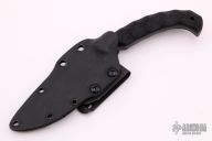 Intended for everyday carry, Contingency’s curved handle and simple sheath conceal well when the need arises. The knife is designed with natural point and edge awareness. In a standard grip, the blade is in line with the thumb. In a reverse grip, the blade is perpendicular to the user’s body. Knife Specifications Blade steel: 80CrV2 Black oxide no-glare finish Blade length: 3.5" Overall length: 7.625" Blade thickness: .165" Skeletonized, full tapered tang Thumb index file work Sheath Lined Kydex® Spring steel, belt clip New from maker with original packaging.