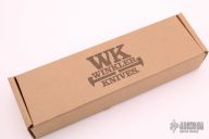 Like most items in the Winkler Knives product line, the WK Crusher Belt Knife was designed to meet the needs of an active duty Special Operations Team. A group from Naval Special Warfare familiar with the uncompromising performance of the WK Belt Knife wanted the same attributes in a knife with glass breaking capabilities. This is it. The rounded, integral extended tang meets the need and is comfortable to carry. Knife Specifications Blade steel: 80CrV2 Black oxide no-glare finish Blade length: 4 1/2" Overall length: 9 1/2" Blade thickness: 3/16" Full skeletonized tang Thumb index file work Sheath Lined Kydex® with leather cover Designed for multiple carry options. Comes with original box, papers and black leather sheath with clip. New from maker.