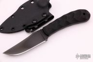 SD1 (STANDARD DUTY 1) For some tasks smaller is better and, often, legal for carry in areas/situations where knife regulations are rigid. SD1 has a trailing point, is light weight and well balanced, and provides extreme cutting performance from a 3” blade. Knife Specifications Blade steel: 80CrV2 Black oxide no-glare finish Blade length: 3 1/4" Overall length: 7" Blade thickness: 5/32" Skeletonized full tapered tang Thumb index file work Sheath Lined Kydex® Spring steel, belt clip New from maker with original packaging.