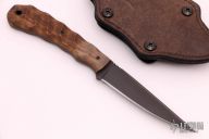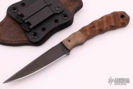 This knife is a collaboration between Daniel Winkler and Kevin Holland, US Navy SEAL (ret.) and US Army Special Operations (ret.). Kevin’s expertise as a military operator, as well as a skilled trapper/outdoorsman, resulted in a knife that is not only effective in tactical environments, but provided utility when required. Knife Specifications Blade steel: 80CrV2 Black oxide no-glare finish Blade length: 4 1/8" Overall length: 9" Blade thickness: 5/32" Full tapered tang Thumb index file work Sheath Lined Kydex® with leather cover Designed for multiple carry options (See our Info page for carry options) Comes with original packaging. New from maker.