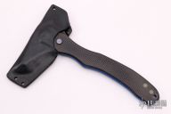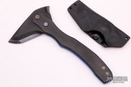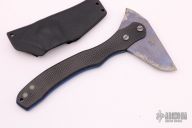 This Small Axe by Warren Thomas has a fingerprint anodized titanium blade with carbidized edge and carbon fiber laminate, .247" blade stock. The handle is carbon fiber and blue G-10 with moon glow inserts. Comes with a kydex sheath. Excellent condition.