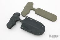 This Push Dagger by Allen Elishewitz features a black double edged blade with .195" blade stock and 1.274" blade depth, full tang construction with black G-10 scales. Comes with a kydex sheath and a green G-10 trainer. Excellent condition.