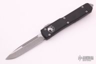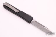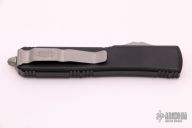 This Ultratech OTF automatic by Microtech features a S/E apocalyptic finished blade with a standard edge. Black aluminum frame with stainless steel clip. Glass breaker. Serial number 202318 and dated 05/2021. Comes with original box and papers. Excellent condition.