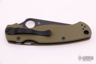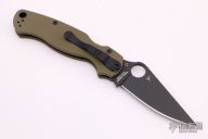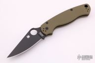 This Paramilitary 2 Folder from Spyderco has a black clip point blade with thumbhole and notched thumbrest. Handle is green G-10 with stainless steel liners and black 4-way reversible clip. Comes with original box and papers. Excellent condition.