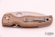 This Shaman Pin by Spyderco features a satin finished spear point blade with notched thumb and finger rests, thumbhole. The handle has natural canvas micarta scales, inlaid stainless steel liners and a satin finished stainless steel backspacer, 4-way reversible stainless steel clip, lanyard hole at the butt. Comes with original box and papers. Excellent condition.