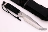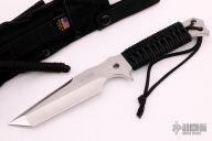 This Repercussion Tanto by Ramon Chaves features a satin finished tanto blade with false top edge, .246" blade stock and 1.588" blade depth, full tang construction with black paracord wrap. Comes with a black nylon sheath. Excellent condition. We believe only 5 were made in this configuration.