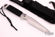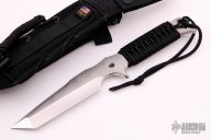 This Repercussion Tanto by Ramon Chaves features a satin finished tanto blade with false top edge, .246" blade stock and 1.588" blade depth, full tang construction with black paracord wrap. Comes with a black nylon sheath. Excellent condition. We believe only 5 were made in this configuration.