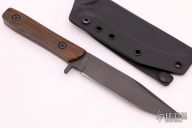 This Model A1 10" American Bowie by Duane Dwyer features a MilSpec Black Oxide coated blade with .167" blade stock and 1.114" blade depth, full tang construction with Lignum Vitae scales. Comes with a kydex sheath and COA. Excellent condition.