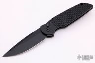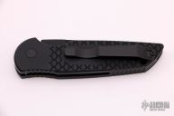 This TR-3 X1 by Pro-Tech Knives features a black spear point blade. The handle has a black aluminum handle with stainless steel backspacer with lanyard hole, tip up blade stainless steel clip.  There is a tritium insert in the push button. Includes the original box and papers.  New From Maker!