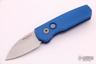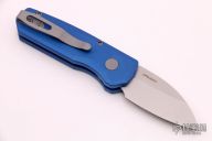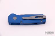 The Runt 5 by Pro-Tech Knives features a tumbled sheepsfoot style blade. The handle features a smooth blue aluminum handle with a bead blasted tip up stainless steel pocket clip. New from maker!