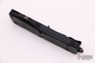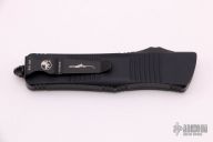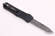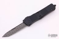 This Troodon OTF automatic from Microtech features a Damascus blade with fullers. The handle has a black aluminum frame with thumb-slide and glass break, black ringed hardware and tip down black stainless steel clip. Comes with a original box and papers. Dated 11/2020 with a S/N of 007. Excellent condition.