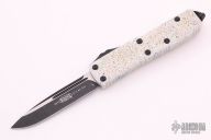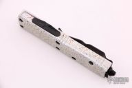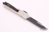 This UTX-85 automatic by Microtech features a S/E black blade with a standard edge. The handle has a PVK Custom cerakote finished aluminum frame. Stainless steel clip. Glass breaker. Serial number 33497 and dated 02/2019. Comes with original box and papers. Has some light scuffing on the blade otherwise excellent condition.