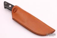 "I was born in Eugene, OR in 1984. My dad, Thad Buchanan, has made knives for as long as I can remember. As a kid I liked to help in the shop every now and again. Growing up I spent time around Bill Harsey, Bob Lum, Ron Lake and their families. I never realized that they were world renowned knife makers; they were just my Dad's friends. But looking back on it, it was pretty cool. These days I wish I would have paid more attention. In 2008 my Dad asked if I wanted to move to Oregon and learn to make knives with him. After working in the restaurant industry I was happy to do something more interesting. Sheath making was one of the first things my dad taught me when I started working in the shop with him. From there I started working with a local saddle maker to better understand the art of leather craft. I make all the leather sheaths for my knives as well as my fathers. I have made sheaths for other makers and collectors as well. I attended my first knife show in April 2011, - the OKCA show in Eugene Oregon. It was that same show where I won my first award for knife making. I won best hunter/utility knife of show. In 2012 I started my own shop back home in Eugene. I love to make R.W. Loveless style knives, but I've made several of my own designs too. I usually put a high mirror polish on my fixed blades and the face of my guards and a nice satin finish on the handle bolts and the sides of the guard. I've used a variety of handle materials including Sambar Stag, Genuine Elephant Ivory, Mammoth Ivory, Mammoth Tooth, Cape Buffalo and many more. I've designed a few folding knife patterns as well. Working with my dad has been an awesome experience and a blessing. I've learned so much in such a short time it's hard for me to believe. I enjoy knife making so much I know I'll do it for as long as I'm capable."