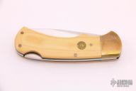 This Four Star Lockback from Puma Knives features a mirror finished drop point blade. The handle has brass bolsters, ivory paper micarta scales with black liners, brass liners and pin with a stainless backspacer. Comes with original box. Excellent condition.