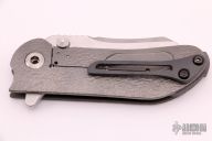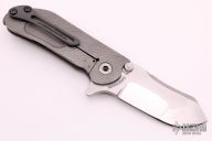 This M8 Flipper by Direware Custom Knives features a satin finished blade with swedge, notched thumbrest, and flipper. The handle is comprised of a textured and anodized titanium frame with zirconium inlays, backspacer and tip up clip. Great blade seating, detent and lock up. Comes with original box. New from maker.