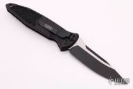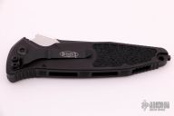 This Socom Elite Auto from Microtech has two toned drop point blade with notched thumbrest. The handle has a black aluminum frame with non-slip rubber inserts and a tip down stainless steel clip, black hardware. Dated 05/2021 and S/N 6621. Includes original box and paperwork. Excellent condition.