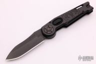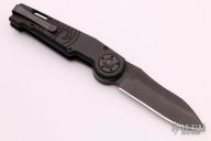 This MUDD Auto folder from Grant and Gavin Hawk features a black spear point blade. The handle has carbon fiber scales, black finished titanium frame, tip up reversible black  titanium clip. Nice lockup and blade seating. Excellent condition. Comes with a zippered case.