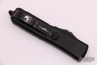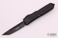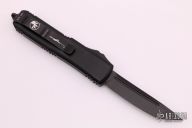 This UTX-85 by Microtech features a DLC finished blade. The handle has a black aluminum frame with DLC hardware and tip down clip. Comes with original box and papers. Dated 09/2020 and s/n 143. Includes the original box and papers. Excellent Condition.