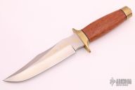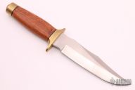 This Fighter by Browning features a satin finished blade with .247" blade stock and 1.486" blade depth, hidden tang construction. The handle has brass guard and butt, wood grip and black spacers. Comes with a zippered case. Excellent condition. "136-1975" on the blade.