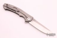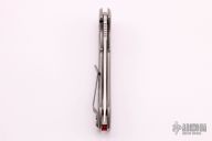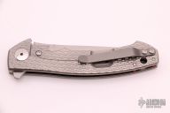 This 0450 Sinkevich designed folder from Zero Tolerance is 1 of 20 that has this custom handle by Dmitry Sinkevich. It features a drop point blade with swedge. The flats are tumble finished with satin grinds. The handle is comprised of milled titanium scales and red anodized aluminum barrel spacers, blasted titanium pocket clip can be adjusted for left or right hand carry. Excellent condition. Comes with original box.