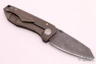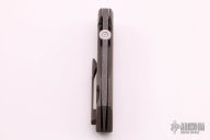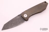 This M11 by Sharknivco features an acid tumble finished blade with thumbdisc and notched thumbrest. The handle has an anodized and tumbled titanium frame with custom pivot, matching tip up titanium clip and backspacer. Has a few light scuffs, otherwise excellent condition.