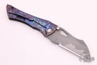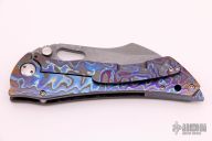 This Hornet from Damjan Knives features a San Mai Damascus multiground blade with swedge and thumb hole. The handle has a Zircuti frame a with matching tip up clip and a mokuti backspacer. Great blade seating, detent and lock up. Includes a padded case and COA. Excellent condition.