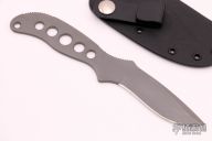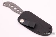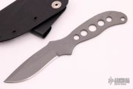 This Kasper Neck Knife from Pat and Wes Crawford features a bead blasted drop point blade with swedge. Notched thumbrest, .131" blade stock and .974" blade depth. Handle has been drilled to reduce weight for ease of carry. Includes kydex sheath. Has some scuffs and scratches, otherwise good condition.