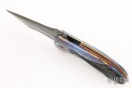"From my workshop in Mount Gambier, South Australia, I researched far and wide in an attempt to find all I could on past and modern knife making techniques, quickly developing my own unique style. Within a few years I had developed my own distinct designs with folding knives including images and high relief carving of Australian fauna and flora, winning my first award in 2003 at the Melbourne Australian Knife Makers Guild Show. Since then I have come away with numerous awards throughout Australian knife shows achieving recognition here and overseas. In 2002 I began branching into forging my own carbon steel and Damascus blades and with the help of a fellow knife maker, Shawn McIntyre, I have honed my skills in Mosaic Damascus. Through the use of an old power hammer and the gas forge I built myself, I started to create my own style of Damascus containing distinctive pattern welded steel. In 2004, I worked along side Mike Peterson to create Japanese Mokume utilizing copper and iron. This lead to the fabrication of bowls and other traditional Japanese pieces, although knife making has remained my passion. In 2003 I became a member of the Australian Knife makers Guild and in 2006 was elected the South Australian representative of the Guild."