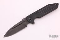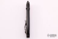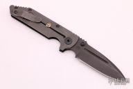 This Dauntless framelock from Strider Knives is a TAD Gear edition, it has no serial number. Black blade, black G-10 and blasted titanium handle, tip up titanium clip. Includes Hinderer "Lock Bar Stabilizer" for maximum reverse lock retention. Strider logos on blade, TAD logo on clip. Dual thumbstuds. A very rare and hard to find piece. Has scuffs and scratches, otherwise good condition.