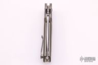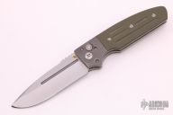 This Custom Dauntless Auto by Allen Elishewitz is a TAD Gear edition, it features a tumble finish blade with notched thumbrest and fullers. The handle bead blasted titanium bolsters, satin titanium liners, green G-10 scales, and a tip up bead blasted stainless steel pocket clip. Nice function, strong lock up, and blade seating is dead center. Includes a zippered case. #6 on blade. Has some scuffs/scratches, otherwise excellent condition. RARE AF