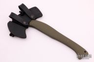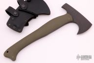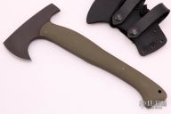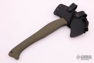 The TAD Winkler Hawk was made for adventure in the backcountry, not backstreets. It's based on the WK II Hunter's Axe by Daniel Winkler. A tapered tang concentrates the weight on the head, increasing each strike while the contoured handle gives you the flexibility of multiple grip positions. Includes a felt-lined Kydex scabbard, original box and papers. Excellent Condition.