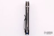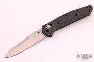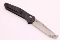 The Warren Osborne designed Benchmade 940 is a popular knife for good reason. It's a comfortable everyday carry knife with its slim design, great ergonomics and lightweight. The 940-1 has a premium CPM-S90V steel blade with a plain edge and a stonewash finish. The carbon fiber handle has stainless steel liners and blue anodized aluminum barrel spacers. The AXIS lock and reversible pocket clip make the knife usable for right and left handers. Includes the original box. Excellent condition.