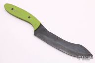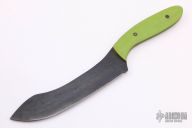 This Kitchen Utility by Aaron Frederick features a black blade with .079" blade stock and 1.275" blade depth, full tang construction with green G-10 scales. Excellent condition.