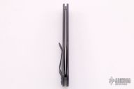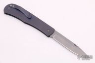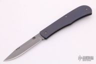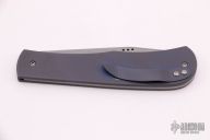 This Slipjoint by Aaron Frederick, John W Smith and Chris Smith features a tumble finished clip point blade. The handle has anodized titanium covers and tip up clip, a tumble finished stainless steel spring. Has half-stop. Has a small flat spot on the blade edge, otherwise excellent condition.