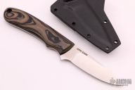 This knife by Dan Crotts features a satin finished blade, .095" blade stock and .800" blade depth, full tang construction. The handle has camo G10 scales with black pins. Comes with a kydex sheath with belt clip. New from maker.