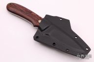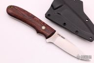 This knife by Dan Crotts features a satin finished blade, .095" blade stock and .800" blade depth, full tang construction. The handle has Kingwood scales with a mosaic pin. Comes with a kydex sheath with belt clip. New from maker.