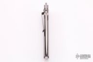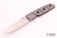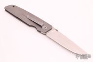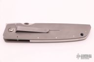 This Mongoose Prototype by Reese Weiland features a satin finished blade with a thumb disc and notched thumbrest. The handle has a bead blasted titanium frame with a matching tip down clip and a stainless steel backspacer. Nice detent, lockup and blade seating. Has some scuffs, otherwise excellent condition.