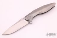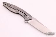This RK1508s Integral Flipper by Rike Knife features a blasted drop point blade with swedge, notched thumb rest and flipper. The handle is comprised of an integrally constructed, machined and bead blasted titanium frame with matching tip up clip. Stainless steel lock face insert. Pivot collar doubles as an over travel stop. Lanyard hole in pommel. Includes padded and zippered case. Excellent condition.