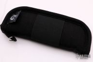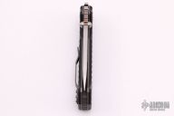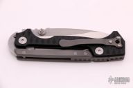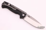 This MG-AD-15 from Andrew Demko features a drop point satin finished machine ground blade with swedge, dual thumb studs and notched thumbrest. The handle is comprised of textured black G-10 scales, blasted titanium frame with reversible titanium tip up clip and tumbled titanium backspacer. This knife features a unique "Top Lock" style locking mechanism. Comes with a zippered case. Has a couple light scuffs, otherwise excellent condition.