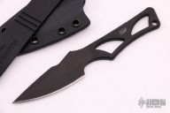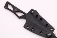 Enyo - a fitting name for this knife, Enyo, was an ancient goddess of war, acting as a counterpart and companion to the war god Ares. This companion knife can be worn around the neck or in a pocket / inside the waist band (IWB). The Enyo’s design makes it a comfortable everyday carry fixed blade with great ergonomics. Enyo is perfectly suited for daily cutting tasks, and is always ready to assist the user. The form fitted Kydex sheath. This Enyo has a Flat Black coating (SpartaCoat – PVD – Tungsten DLC) and a black Kydex sheath. Has a couple light scuffs and some scratches on the sheath, otherwise excellent condition.